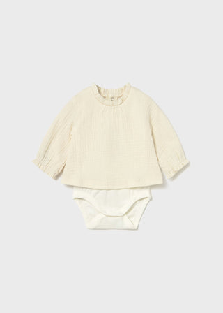 Sunny Meadow Newborn Girl Gauze-Layered Long Sleeve Bodysuit – Ceramic White