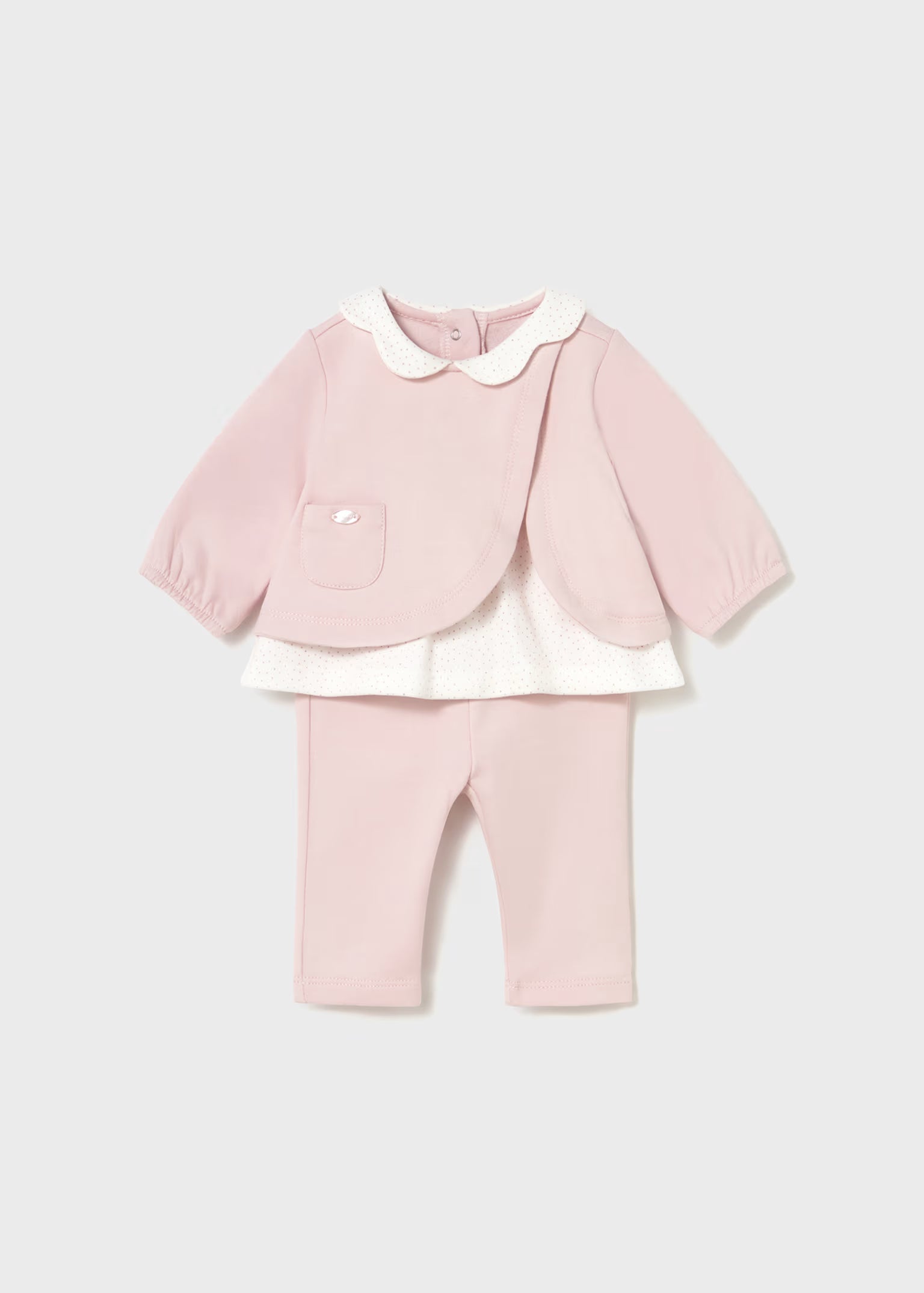 Designed with gentle fabrics and an easy fit, it’s perfect for busy days when you want baby to look polished without sacrificing comfort. Simple, classic, and versatile, this is a go-to outfit parents will reach for again and again.