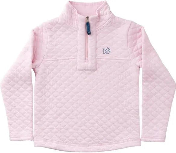Lightweight quilted fabric offers texture without heaviness. Full-length zipper gives easy on/off convenience. Stand collar provides a little extra warmth. Tailored seams help maintain shape through play. The pullover works beautifully over tees or under outerwear.