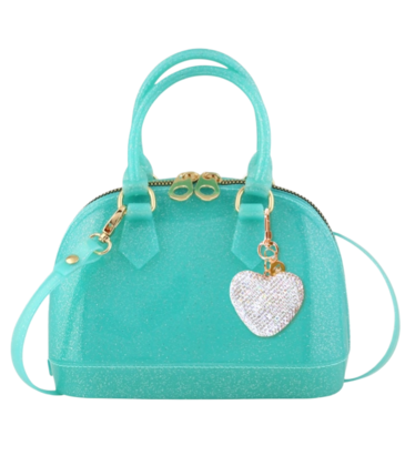 Cate is the original classic jelly bag for carrying all of her hopes, dreams and beautiful things. Made of durable jelly material with matching handles and zipper entry. She comes with a matching cross-body strap and is available in lots of fun colors including sparkle! Lightweight, durable, clean with a wet cloth. 7” x 5.5” x 3.5”