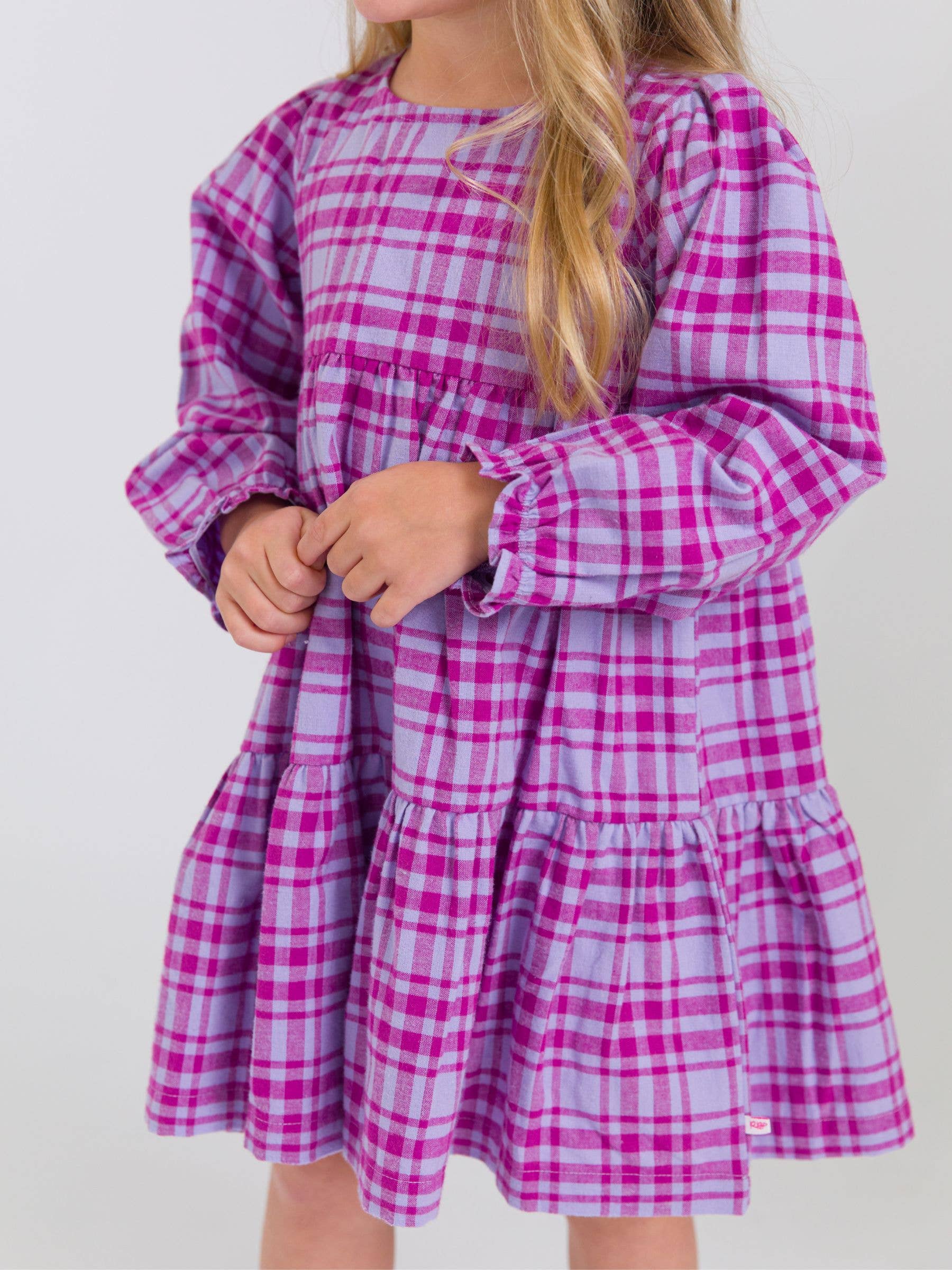 Girls Harper Plaid Woven Long Sleeve Tiered Twirl Dress